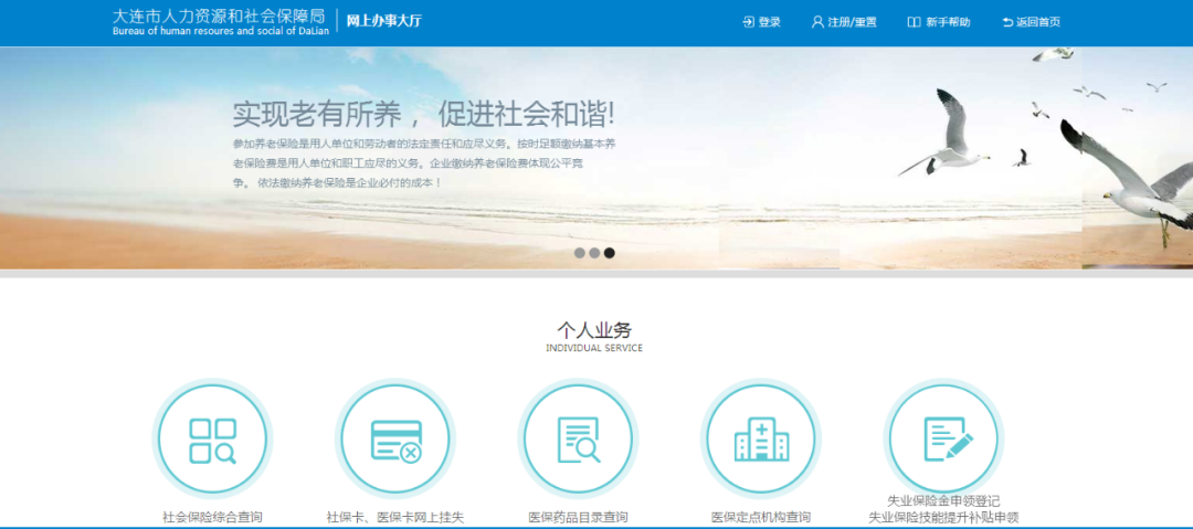 步驟一:失業(yè)人員本人通過計(jì)算機(jī)登錄大連市人力資源和社會(huì)保障局-網(wǎng)上辦事大廳→個(gè)人業(yè)務(wù)(網(wǎng)址:http://bsdt.dlyun.work/personal.jsp)