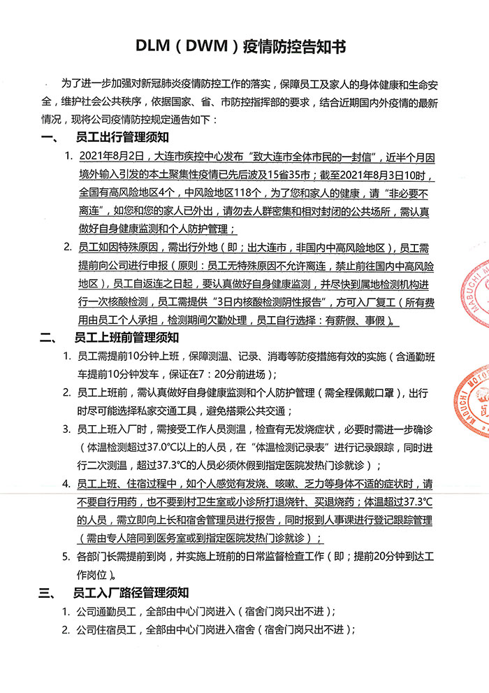 DLM(DWM)疫情防控告知書