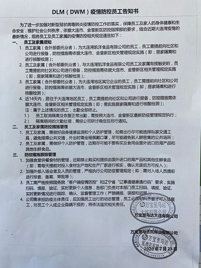 DLM(DWM)疫情防控員工告知書(shū)